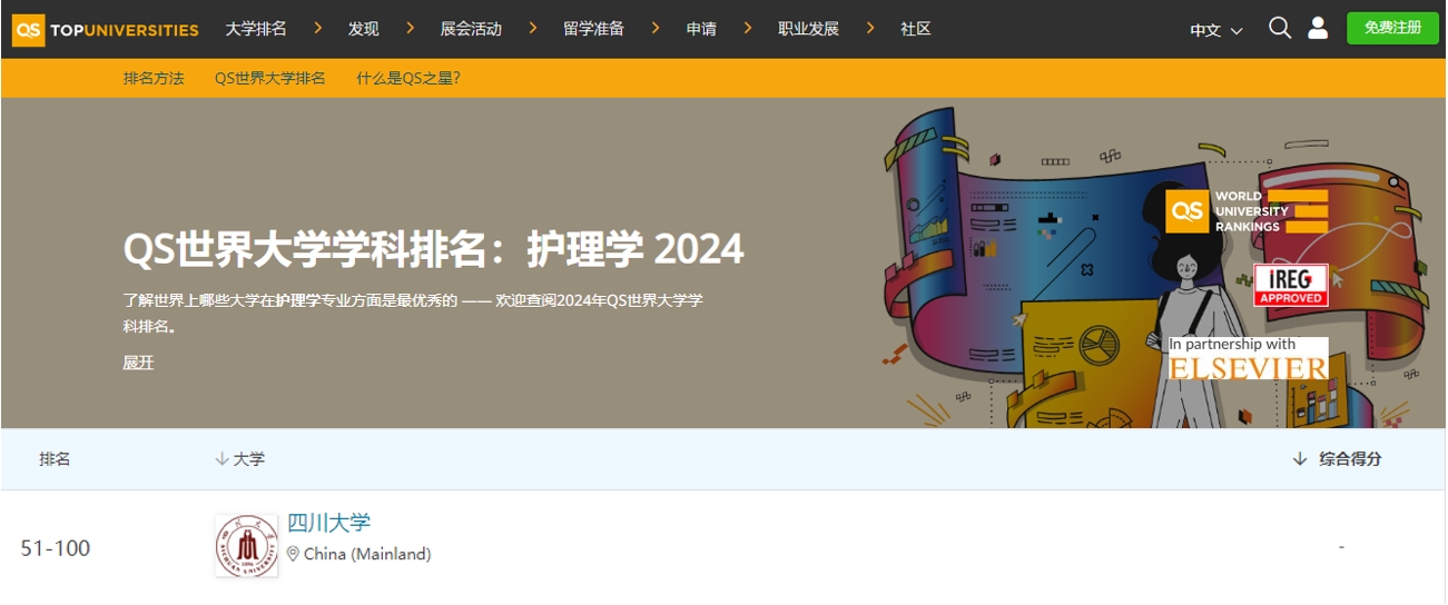 QS World University Rankings by Subject 2024 released, Sichuan University Nursing enters the Top 100 globally