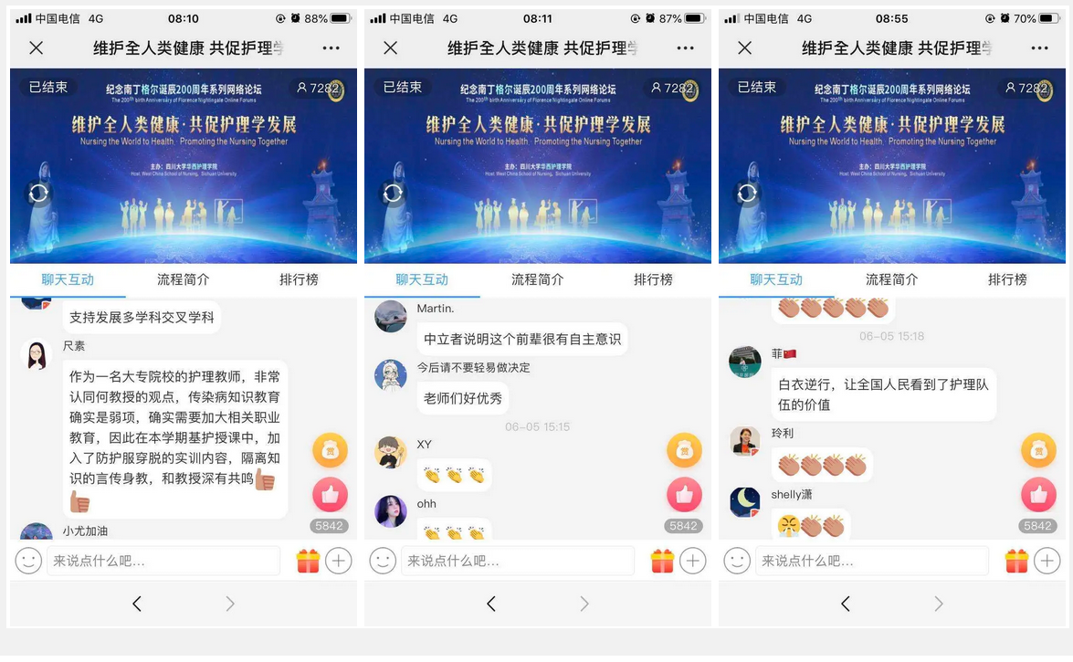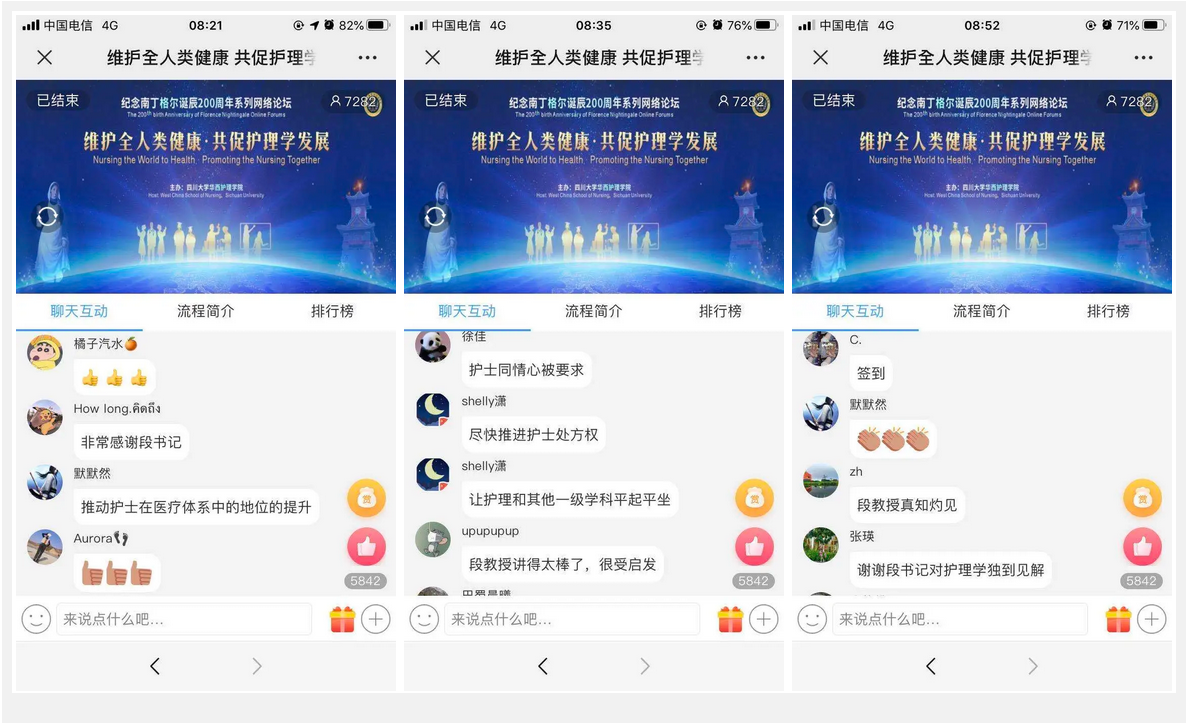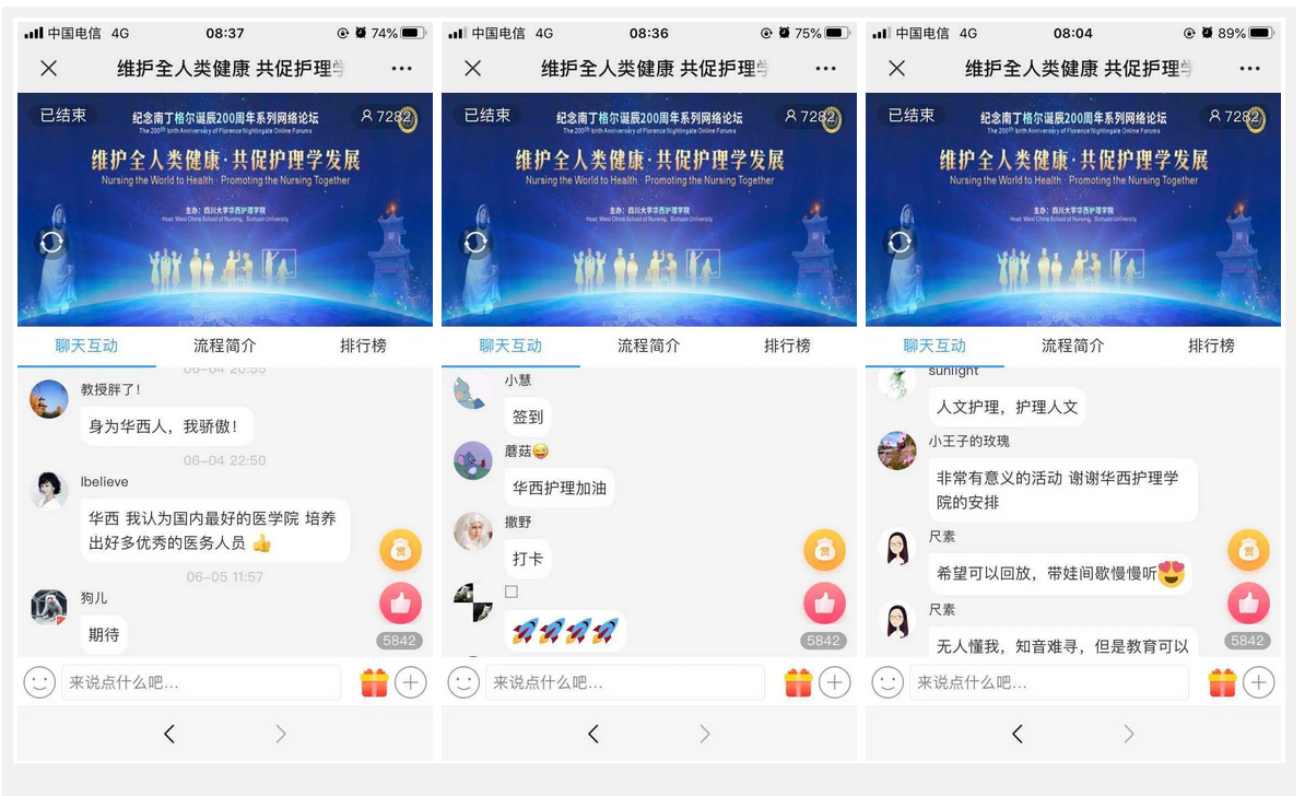 More than 6,000 audiences from universities and medical institutions in most provinces across the country watched the forum. The participants actively participated in the discussion and left messages, appreciating the experts’ wonderful sharing and West China Nursing School’s forum organization.