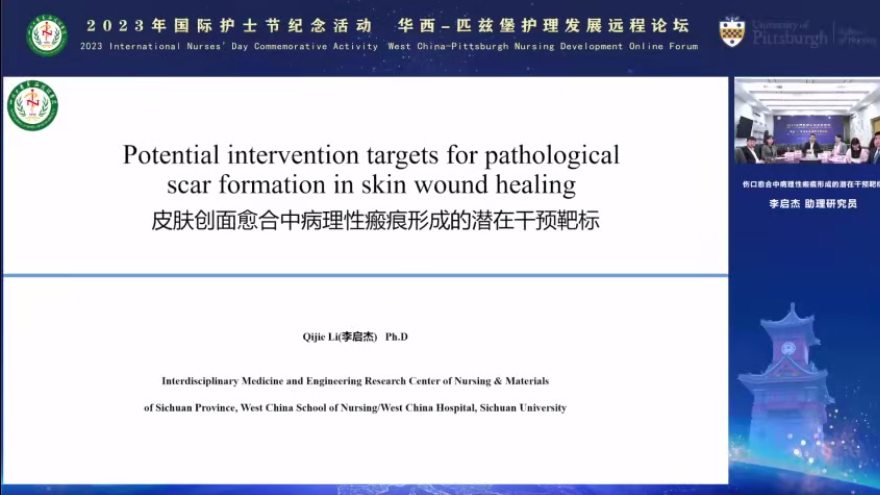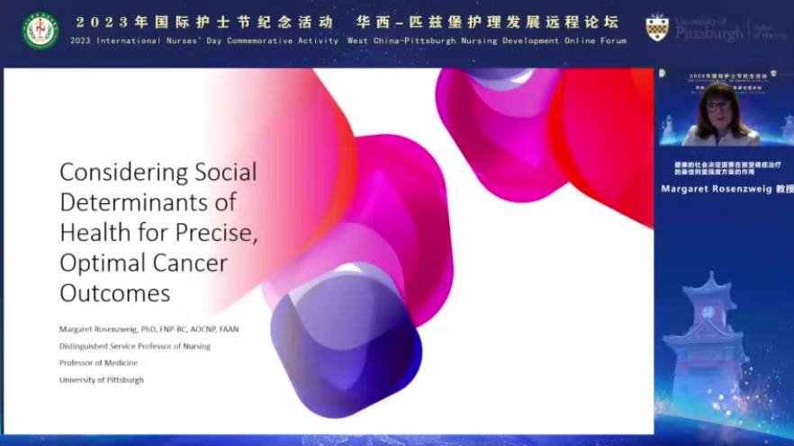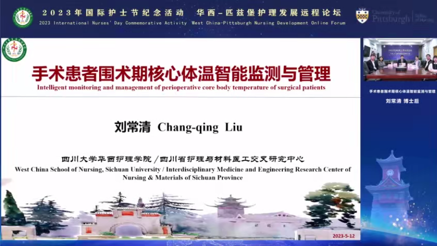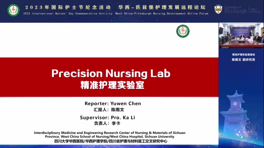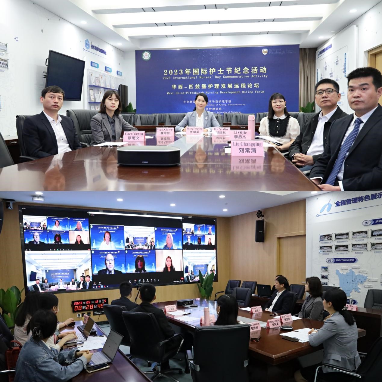 On May 12, 2023, 2023 International Nurses’ Day Commemorative Activity "West China-Pittsburgh Nursing Development Online Forum" was held in 5G Remote Conference Center. Prof. Yvette Conley, Associate Dean of Research of School of Nursing, University of Pittsburgh, Mr. Jeff Bernstein, UPMC International Senior Vice President and President in China, Prof. Wei Xiawei, Director of International Office of West China School of Medicine/West China Hospital, Sichuan University, Prof. Zhang Fengying, Vice Dean of West China School of Nursing, Prof. Hu Xiaolin of West China School of Nursing and a number of nursing and interdisciplinary experts from both schools attended the Forum.
