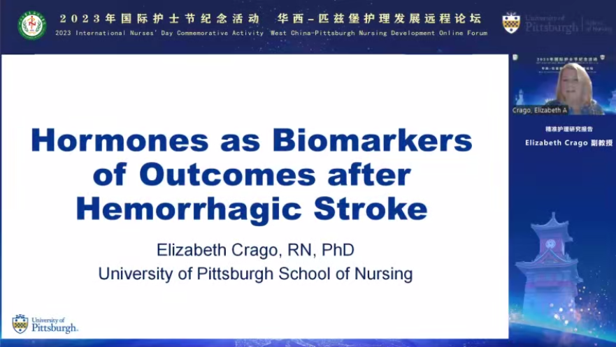 Associate Professor Elizabeth Crago presented her topic titled "Hormones as biomarkers of outcomes after Hemorrhagic stroke," discussed the function of hormones as biomarkers in the prognosis of hemorrhagic stroke. She pointed out that further research should be conducted to explore the impact of factors such as environment and lifestyle on the outcomes of hemorrhagic stroke to provide targeted interventions to improve outcomes of patients.