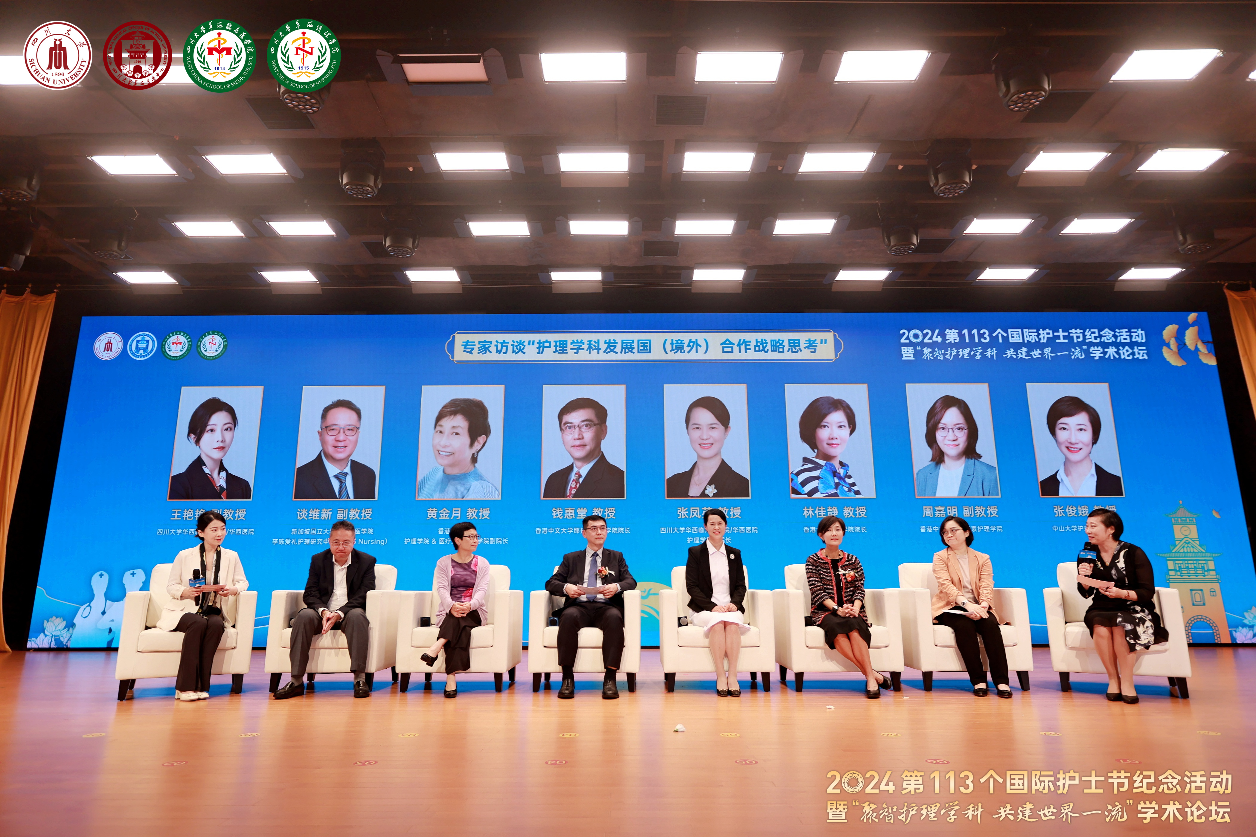 2024 International Nurses’Day Commemorative Activity & “Gather wisdom for Nursing Discipline Build World Class Together” Academic Forum was successfully held at the Houde Building in Huaxi Campus of Sichuan University. Dean Luo Fengming of West China School of Medicine/ West China Hospital of Sichuan University, International Office / HK,MC and TW Office and other relevant functional departments of Sichuan University attended the forum. The forum specially invited deans, experts and scholars of nursing school from National University of Singapore, The University of Hong Kong, The Chinese University of Hong Kong, The Hong Kong Polytechnic University, Kiang Wu Nursing College of Macau,and more than 500 representatives of nursing teachers and students attended the forum.