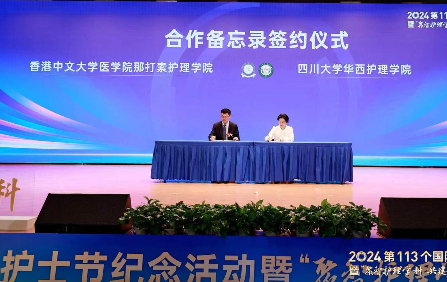 Dean Li Ka of School of Nursing of West China School of Medicine/West China Hospital, Sichuan University, and Director Chien Wai Tong of The Nethersole School of Nursing, Faculty of Medicine, The Chinese University of Hong Kong signed an MOU.