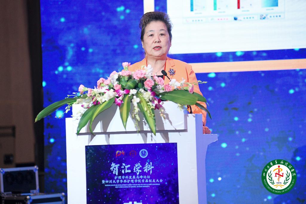 Prof. Li Weimin, Dean of West China School of Medicine/School of Nursing & President of West China Hospital, Sichuan University, made a welcome speech for all the attending guests, experts and alumni. He said that the West China School of Nursing, holding the spirit of loyalty, persistence, simplicity and dedication, has trained countless outstanding nursing leaders, and achieved good results in nursing education, scientific research and international cooperation. Especially during the pandemic of the COVID-19, West China School of Nursing has contributed strength in areas of medical care, education, research to the battle against the pandemic. He emphasized the opportunities and challenges are coexisted for today's nursing discipline, and hoped that all nursing colleagues can work together to overcome difficulties and jointly promote the development of nursing discipline in China. He expressed his best wishes to Chinese nursing discipline to become world first-class soon.