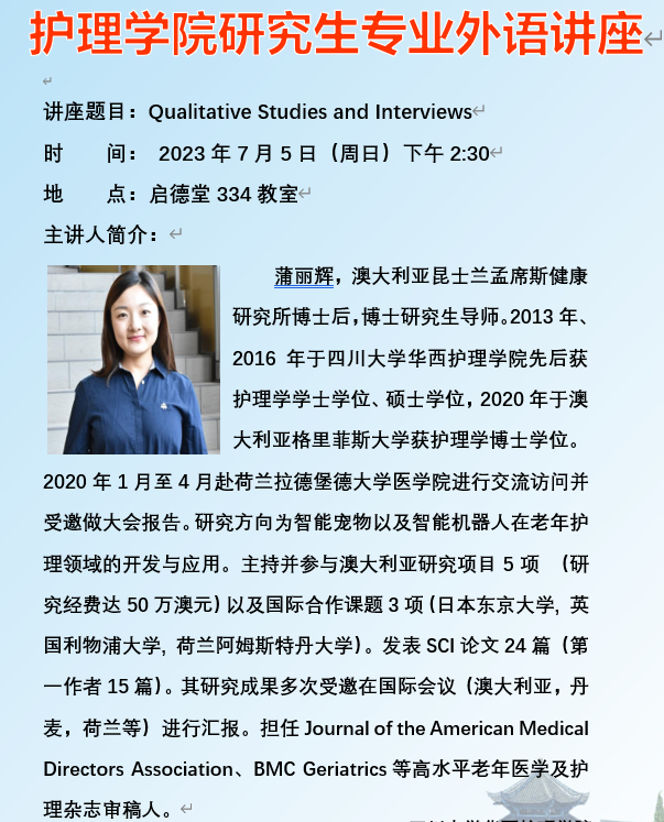 2023年7月5日,讲座预告-Qualitative Studies and Interviews