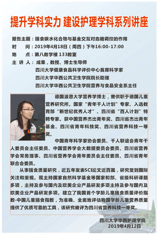 2019年4月18日讲座预告——“膳食碳水化合物与基金交互对血糖...