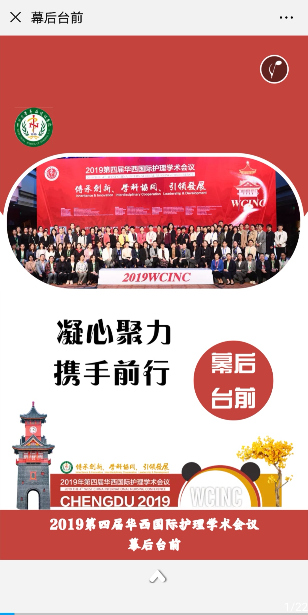 2019年第四届华西国际护理学术会议的顺利召开,离不开幕后默默工作的您。本次大会幕后工作人员共有12个工作组,约300余人,包括嘉宾VIP接待/注册组、交通接待组、普通代表注册组、会场组、餐饮住宿组、学术组、试片组、壁报/安保...