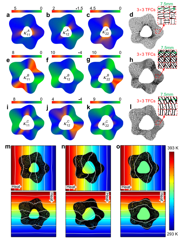12月10日,《自然·通讯》(Nature Communications)在线刊发了机械学院高亮教授团队与新加坡国立大学仇成伟教授、能源学院胡润副教授关于热超构材料拓扑优化设计的最新研究成果“Robustlyprintable freeform thermal metamaterials(稳健可打印的自由形状热超构材料)”。机械学院博士生沙伟、副教授肖蜜为论文共同第一作者,高亮教授、仇成伟教授、胡润副教授为论文共同通讯作者,华中科技大学数字制造装备与技术国家重点实验室为论文第一完成单位。 超构材料因具有常规自然材料不具备的属性被学术界和工业界广泛关注,如力、热、声、电磁超构材料等,其中热超构材料因可操控热流获得一系列超常热学功能(如:热隐身、热集中、热伪装、热旋转等)备受关注。随着变换光学和散射抵消方法应用于热学领域,一系列具有不同功能的热超构材料纷纷被设计和制备,但是,目前热超构材料设计仍面临三大挑战:(1)利用变换热学法设计的热超构材料需采用非均匀、各向异性的材料参数,而常规材料往往不具备,使得实验制备热超构材料难度很大;(2)热超构材料结构形状受限,目前以圆形、椭圆形等规则形状的热超构材料制备居多,影响了热超构材料的工程适用性;(3)采用数值优化方法设计热超构材料依赖背景温度场和目标超常热学属性,影响了设计的灵活性和热超构材料的全方位功能性。因此,如何设计并制备具有自由形状且全方位功能性的热超构器件是热超材料领域亟需解决的难题。 图1 稳健可打印的自由形状热超构材料拓扑优化设计 针对以上难题,研究团队提出了一种稳健可打印的自由形状热超构材料拓扑优化设计方法(图1),采用拓扑优化设计具有指定导热系数的拓扑功能单胞,组装生成热超构材料,开展了自由形状热超构材料拓扑优化设计-热超构器件增材制造-热学仿真与实验性能测试。研究团队按照上述思路,设计了具有自由形状的热集中、热旋转和热隐身等三类热超构材料构型,并开展了数值仿真(图2)和热学实验(图3)性能测试,结果表明无论热流从何种方向通过三种热超构材料,其内部各自呈现出良好的热集中、热旋转和热隐身效果。 图2 拓扑优化设计的三种热超构材料及其数值仿真温度场分布(左:热集中;中:热旋转;右:热隐身) 图3 3D打印制备的热超构器件及其热学实验温度场分布 研究团队采用拓扑优化方法设计了具有自由形状、全方位功能性的热集中、热旋转和热隐身超构材料,达到了当前利用混合材料结构实现热超构材料设计的最好水平,将有力推动热超构材料在航空航天、电子等领域的工程应用。研究工作得到了国家自然科学基金(52076087)、国家重点研发计划(2020YFB1708300)等项目资助。(原文链接:https://mp.weixin.qq.com/s?__biz=MzU1OTI0NjU0Mw==&mid=2247484318&idx=2&sn=29300743467c0a4f98e40c28e609e3ed&chksm=fc1b7e3ecb6cf72807021182ce55d71e1e8531abb50c660a871555a2332b315eb8d9bb3254c6&scene=27)
