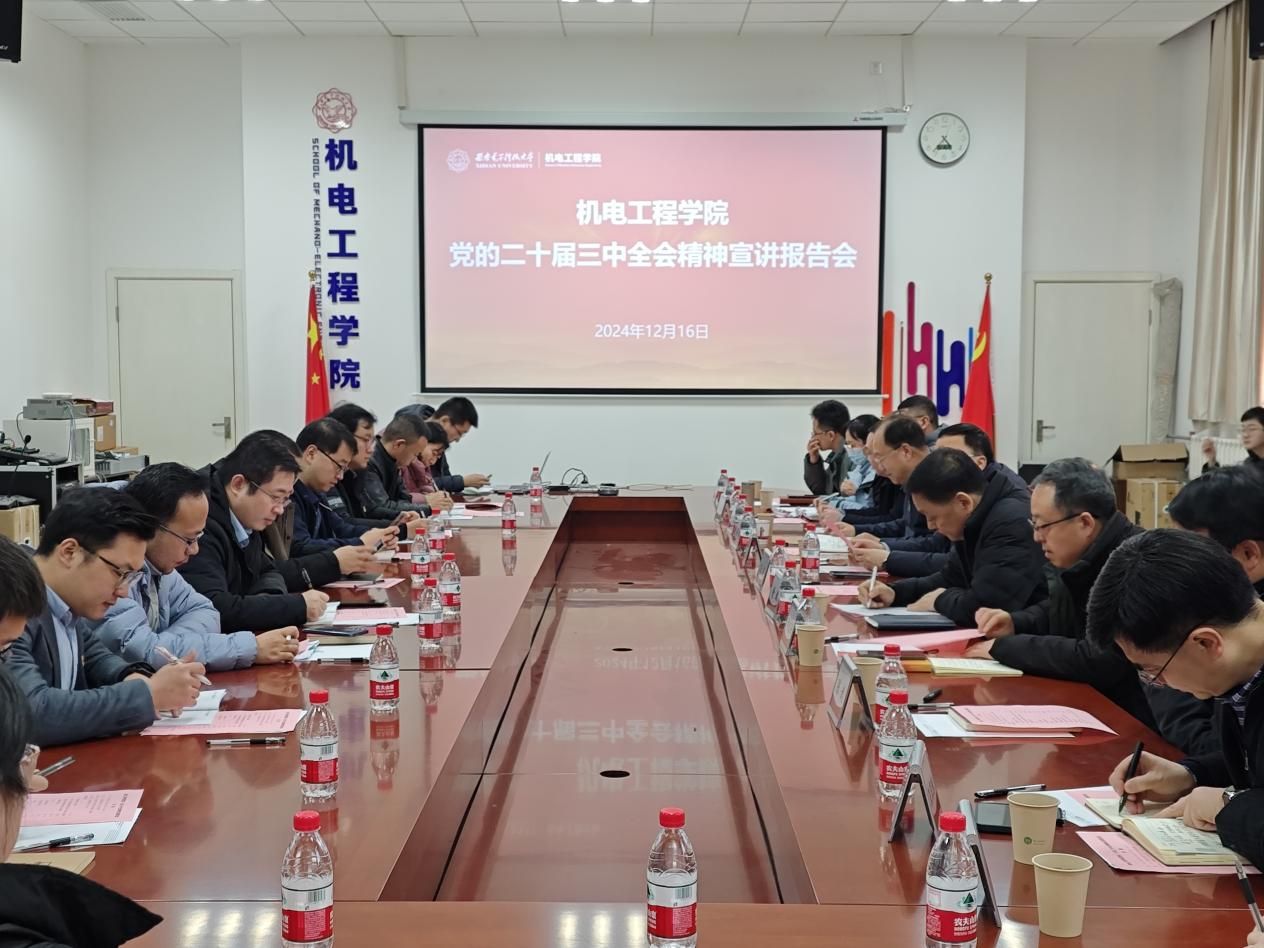 (通讯员 郭子钰 赵宇)为进一步学深悟透党的二十届三中全会精神,12月16日下午,开云kaiyun官方网站在北校区主楼三区145北会议室举办党的二十届三中全会精神宣讲报告会,邀请陕西省工业和信息化厅副厅长黄新波到会讲授。校党委常委、副校长王泉,西安匠为智能科技有限公司董事长张敏,开云kaiyun官方网站党政领导班子成员和学院师生代表参加了此次会议。会议由开云kaiyun官方网站党委书记梁玮主持。