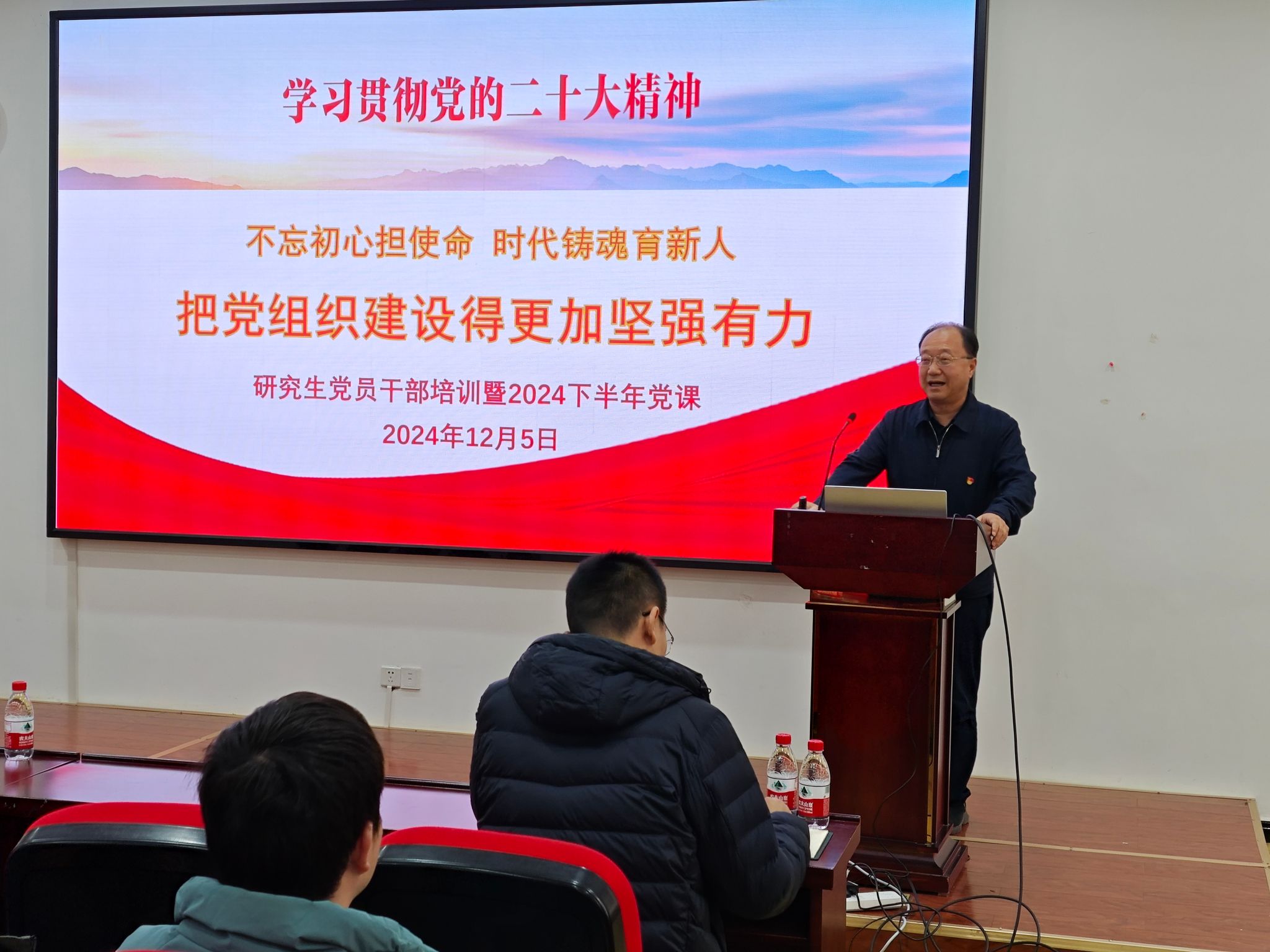 (通讯员 张硕岩 赵宇)为深入学习贯彻党的二十大、二十届三中全会及全国教育大会精神,进一步加强基层党组织建设,强化提升研究生党员干部党建理论水平与党务工作能力,12月5日下午,开云kaiyun官方网站在北校区主楼三区237报告厅召开党委书记讲党课暨学生党员干部培训会。开云kaiyun官方网站党委书记梁玮、正处级组织员李文兴、党建与学生工作办公室主任赵宇和研究生党支部全体支委参加了此次会议,会议由李文兴主持。