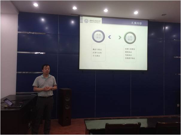 接着,陈晓龙老师汇报了自己2015年初参加教务处教师发展中心组织的赴法国格勒诺布尔综合理工学院培训的情况,他指出,相比于国内的“一卷定乾坤”、“学生考前突击”等现状,国外更注重分阶段考核学生,培养学生独立思考的能力。