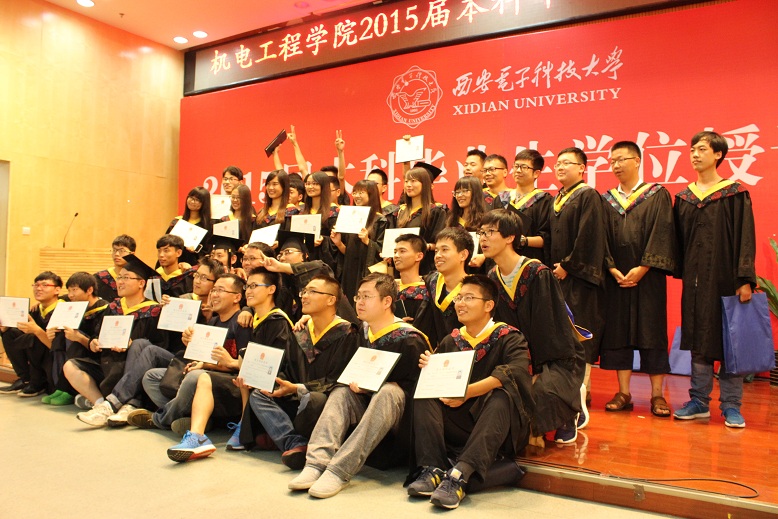 仪式的最后,院党委副书记陈波代表学院对即将踏上新的征程的2015届毕业生寄语,他说,希望同学们秉承“艰苦奋斗、自强不息、求真务实、爱国为民”的西电精神,做到志存高远、脚踏实地,并祝愿大家拥有无限广阔美好的前景和幸福美满的生活。仪式在热烈的掌声之中落下帷幕。