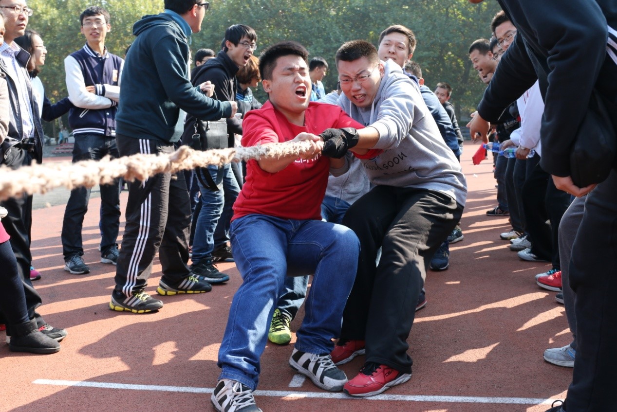 (通讯员 王冬阳)2015年11月1日,秋色宜人,天朗气清,开云kaiyun官方网站第三届研究生趣味运动会在老校区操场正式拉开序幕。运动让idea迸发!为促进学院之间的交流,增加各学院研究生之间的互动,本次运动会以院为单位进行比赛。比赛项目共有9项,包含8个竞赛项目(5人持竿蛇形往返接力、20米足球绕杆接力、篮球运球上篮接力、拔河、1分钟个人跳绳团体赛、集体跳大绳、30米绑腿同行比赛、20人×60米穿梭接力)和1个表演项目(相扑擂台表演赛)。