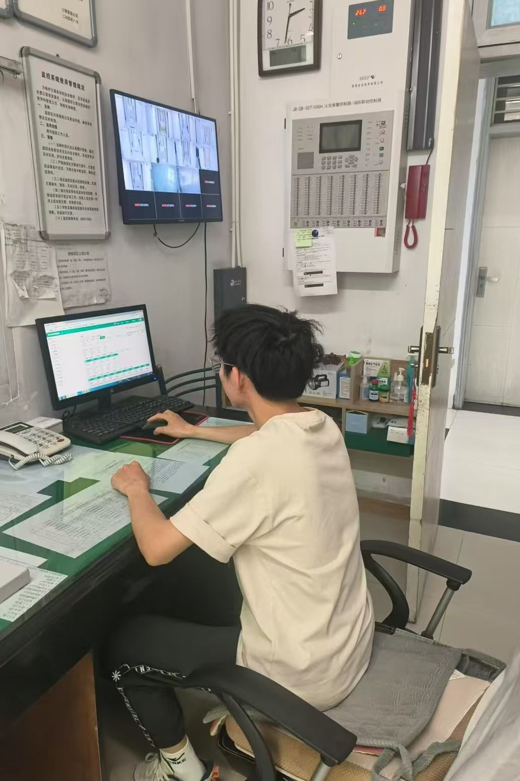 杨康同学在消防安全检查岗中完成消防栓与应急灯的全面检查,他表示:“安全无小事,每一次检查都是对师生生命的负责。”