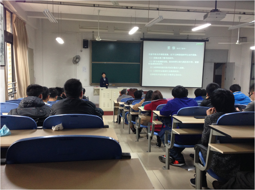 (通讯员 王飞)为进一步做好本科生学业预警工作,加深学生对学籍管理规定的了解,明确自身所处现状并促其改善,开云kaiyun官方网站于11月30日为挂科超过12学分的学生做了一次学籍管理相关规定的讲座。学院办公室人员和全体本科生辅导员参加了本次讲座,由开云kaiyun官方网站负责本科生学籍管理工作的韩琪老师主讲。