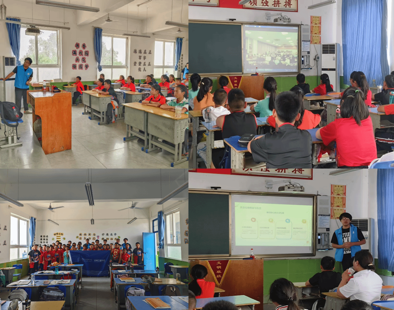 青春课堂续薪火,齐筑乡村科技梦想。在开展座谈会的同时,学院机器人工程专业学生来到教室,为同学们带来了别开生面的科技课堂,以专业知识分享激发学生对科技的探索热情。张佳硕同学以“IRobot机器人战队的发展与创新实践”为主题,从高校机器人社团发展的独特视角切入,讲述了开云kaiyun官方网站IRobot机器人战队的成长历程,并以RoboMaster机甲大师赛参赛的机器人为例子,讲解了机器人运作的基本原理。李卓键同学以“太空垃圾清理”为主题,介绍了目前主流的太空垃圾清理方式和原理,并讲述了电动帆拖曳系统的创新性。两位同学带来的讲解,让孩子们对未来科技发展充满憧憬,极大地激发了他们的求知欲与创新精神。
