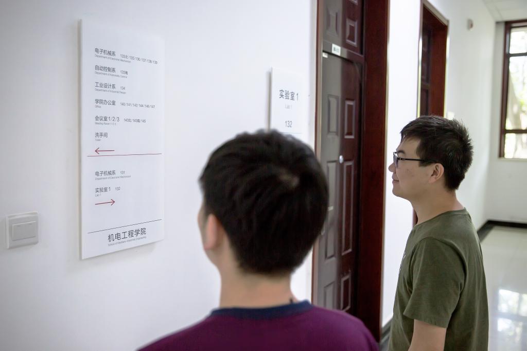 中英文双语指示与学院目前国际化进程相契合,为国际友人提供一份善意、点滴的温暖。在视觉传达的过程中,蕴含出学院优良的院风、教风、学风。