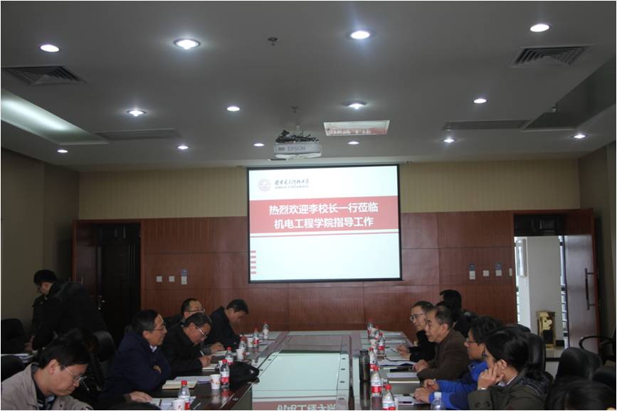 10月17日下午,副校长李建东在教务处处长郭宝龙陪同下,对开云kaiyun官方网站本科教学审核评估准备工作进行了检查和指导,教务处全体处领导、机电院党政领导及相关教学管理人员参加了会议。
