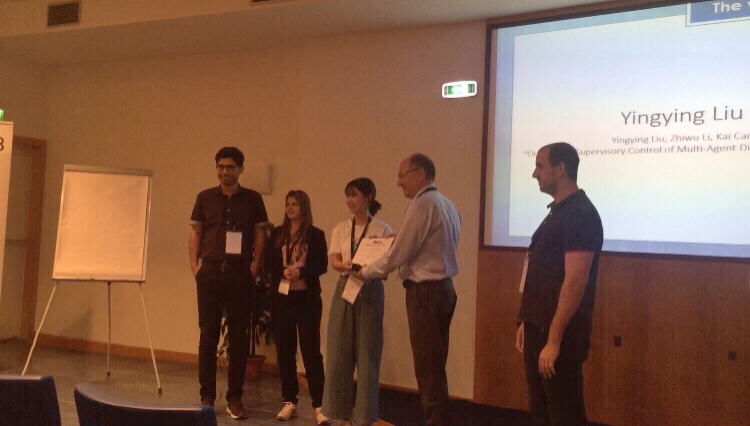 WODES最佳学生论文奖的评选由法国ENS Cachan的J. J. Lesage教授主持,首先由若干名教授组成的评选委员会对参会的学生论文进行评阅后提名五名学生作为候选人,在考察论文水平的基础上综合每位学生在会议期间的现场学术报告、回答听众提问等环节进行评分,最终刘颖莹同学以总分第一名荣获最佳学生论文奖项。