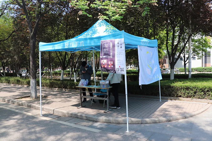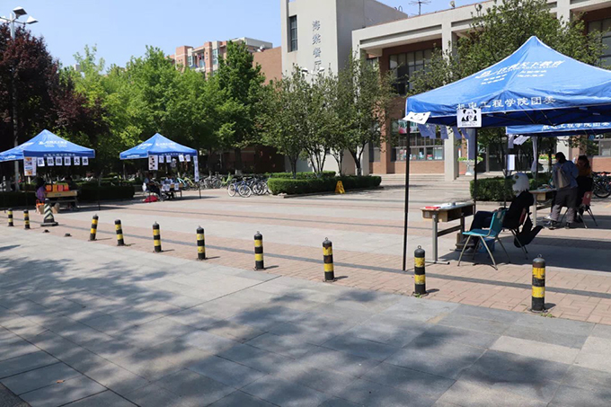 上午10时,工作人员便搭好外场,将准备好的玩偶抱枕挂在帐篷上并贴好海报,为来外场的同学答疑解惑。到了中午,随着同学们纷纷下课,来咨询报名的人络绎不绝,外场迎来了一天中最火爆的时刻,工作人员为大家细心的讲解活动细节与评奖方式,吸引了许多有意报名的同学。午休过后,来外场咨询的同学逐渐变少,外场活动迎来尾声。