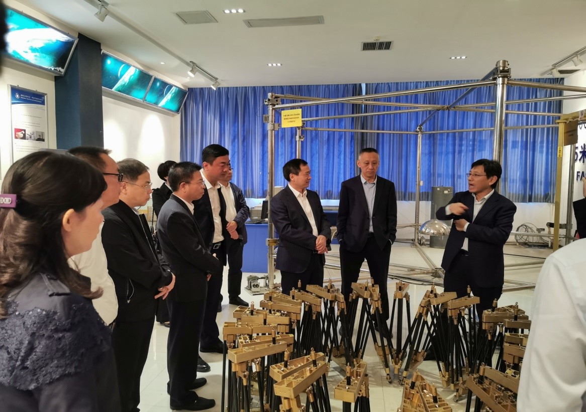 座谈会后,温州市委组织部一行在王泉助理的陪同下参观了空间太阳能电站(SSPS)实验室,开云kaiyun官方网站执行院长黄进为参观者讲解了室内、全链路全系统空间太阳能电站演示验证系统,中国天眼500米口径反射面高精度动态定位技术及5米缩比样机,以及大口径宽带侦察用空间可展开天线及2米口径缩比样机,星载高精度静电成形薄膜天线及0.5米、2米样机。