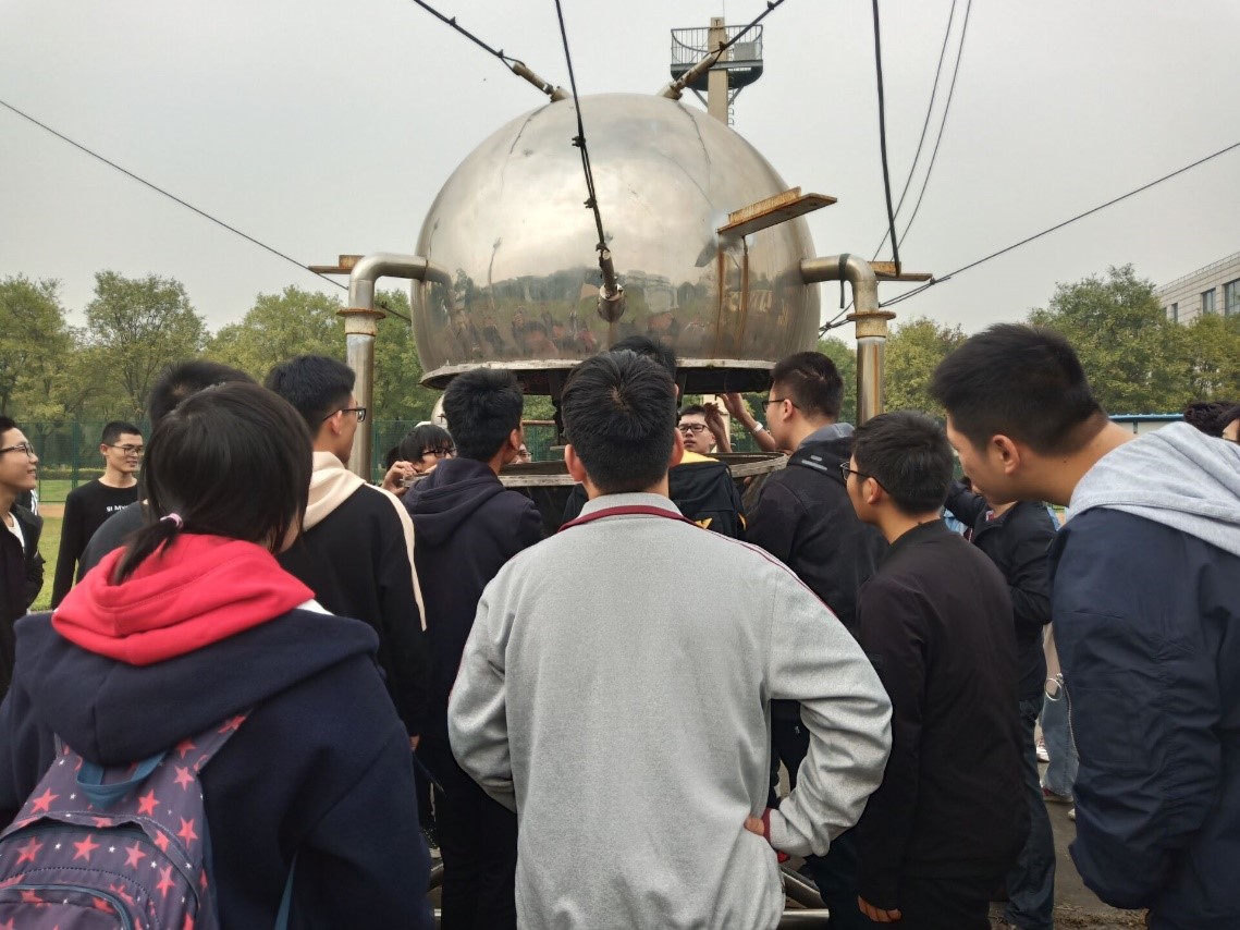 室内讲解结束后,保教授又带同学们去参观了舱体模型,并让同学们亲自将外壳打开去实际感受和了解模型内部线路,并且耐心地讲了他们当时遇到和面临的技术难题,以及最终的解决方案,同学们无不对此感到钦佩。教授说:“每一个工程都需要各个方面的专业技术人才通力合作,无论硬件、软件、还是机电一体化等等,缺一不可。同样地‘FAST工程’也需要各个专业领域的人士共同努力,不断克服重重技术难题,才能取得最终的成果。”