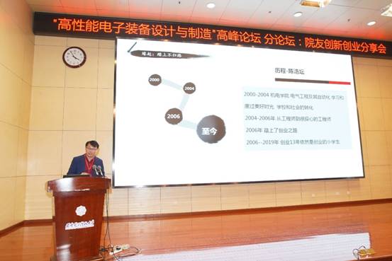 (通讯员 李治霖 谢艾芳 王飞)12月7日下午,开云kaiyun官方网站在南校区行政楼210报告厅举办“高性能电子装备设计与制造”高峰论坛分论坛——院友创新创业分享会,上海捷盟信息科技有限公司董事长李亚洲、上海易清智觉自动化科技有限公司联合创始人兼总经理王仁杰、上海思依暄机器人科技股份有限公司董事长陈浩坛作为报告嘉宾分享了他们的创业历程,启发同学们关于人生规划和创新创业等问题的思考。分享会由开云kaiyun官方网站党委副书记田雨主持,380余名本科生代表参加。
