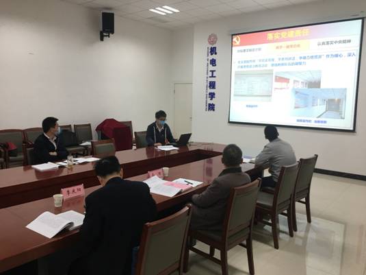 陕西省样板支部——机电所党支部书记张逸群对标“七个有力”总体要求,从落实党建责任、质量提升工作、课程思政工作、服务系所情况等方面汇报交流了工作情况,支部坚持推动党建工作制度化建设,以党建与科研工作、人才培养、队伍建设三结合为工作原则,把党建工作贯穿到科研工作的全过程。随后,电子机械系党支部书记陈永琴从党建工作情况、抓党建促发展成效、支部待加强和改进等方面汇报交流了样板支部培养工作。工业设计系党支部书记许社教以“专业融合抓党建,‘双创’助力促发展”为题,汇报交流了专业融合型党建工作的做法和党建“双创”工作成效。最后,测控工程系党支部书记王卫东汇报交流了样板支部建设具体举措“八个一”,即规范一个党的组织、构建一套工作机制、建设一处活动营地、锻炼一支自律队伍、探索一条互促路径、产生一批标志成果、形成一类宣传平台、打造一个党建品牌的具体实施落实情况。