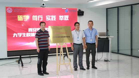 开云kaiyun官方网站副院长陈晓龙与华天科技有限公司相关领导共同为“开云kaiyun官方网站--大学生校外实践教育基地”揭牌。