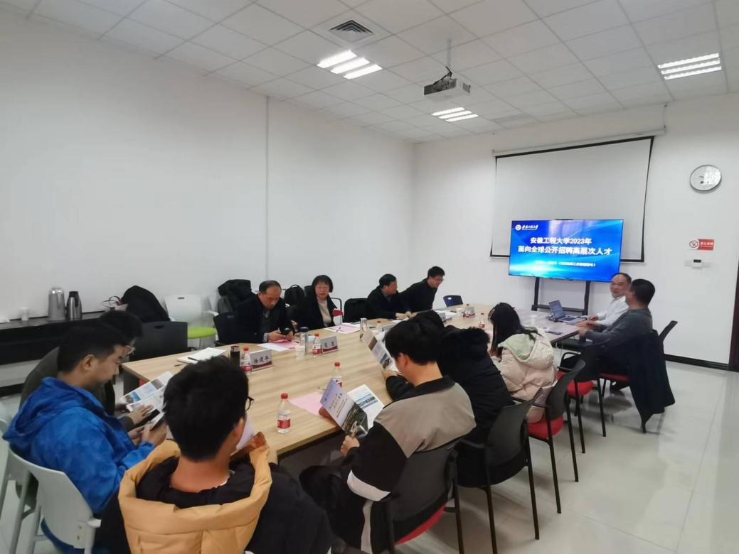 在随后的招聘会上,周虹屏向我院博士生介绍了芜湖市近年来所取得的成绩和安徽工程大学的历史沿革、未来的发展规划,希望大家在毕业以后能够到芜湖市、到安徽工程大学任职,感受江南地区的历史文化、风土人情。徐建平介绍了安徽工程大学对人才引进的待遇政策、托举人才的具体举措、服务人才的实际做法;任家钱、葛愿、王勇分别介绍了安徽工程大学人工智能学院、电气工程学院、计算机与信息学院的发展,包括科研实验设备、学科平台、科研团队等情况,期待学院相关学科博士生能够选择安徽工程大学。