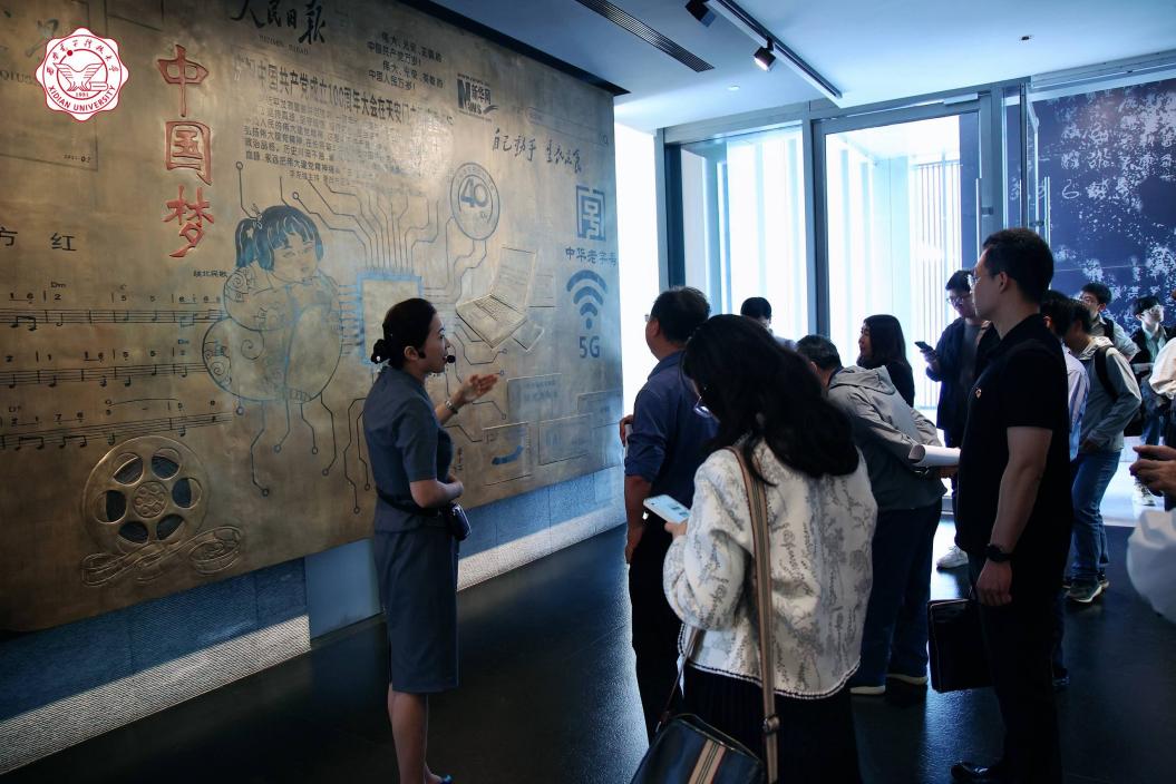 学院一行随后前往国家版本馆西安分馆开展参观学习。在讲解员带领下,师生党员了解了国家版本馆西安分馆“一总三分”的总体布局和西安分馆(永济阁)的设计理念、建筑特点、收藏版本等情况,参观了文济阁通顶书墙、《赓续文脉踔厉前行—中华文化经典版本展(西部篇)》和《楮墨遗珍万里同风——丝绸之路版本展》。学院师生党员认真观看一个个历史文物,各类载有中华文明印记和地方特色印记的版本,回溯历史长河,感悟中华优秀传统文化、革命文化和社会主义先进文化精髓,体验中华文化种子基因库的时代活力。