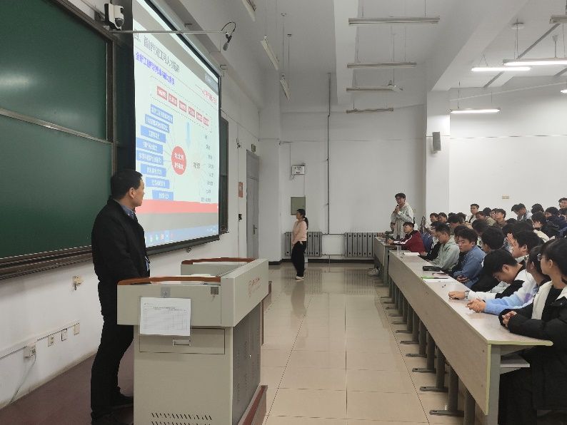 訾斌从学院概况讲起,为同学们介绍了学院丰硕的科研成果、强大的师资平台和高质量人才培养成效,加强了学生对学院和专业的认同感。他表示,以机械工程为基础的实体制造业,已经成为国家经济的命脉,党的十八大以来,习近平总书记多次强调发展制造业的重要性。他针对智能制造系统架构和六项关键技术做了详细的讲解,让同学们建立起对智能制造技术方向的初步认知。紧接着,他从高端装备与核心技术、智能工业机器人、增材制造技术、智能车辆、智能机床、国防军工装备智能制造六个方向,介绍了智能制造技术发展趋势展望。訾斌强调,智能制造工程教育以国家战略需求为导向,培养综合素质全面发展的全方位人才。他鼓励同学们从大一起就要积极参与广泛的科研、竞赛及课外活动,同时培养专业能力与非专业能力。