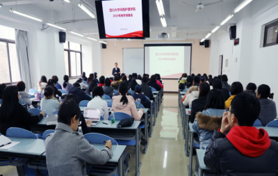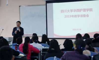 张凤英副院长作《凝心聚力,迎接“双一流”背景下护理教育的机遇与挑战》专题报告, 对2019年教学工作计划、师资建设、教学改革和核心竞争力构建等方面内容进行了详细阐述。