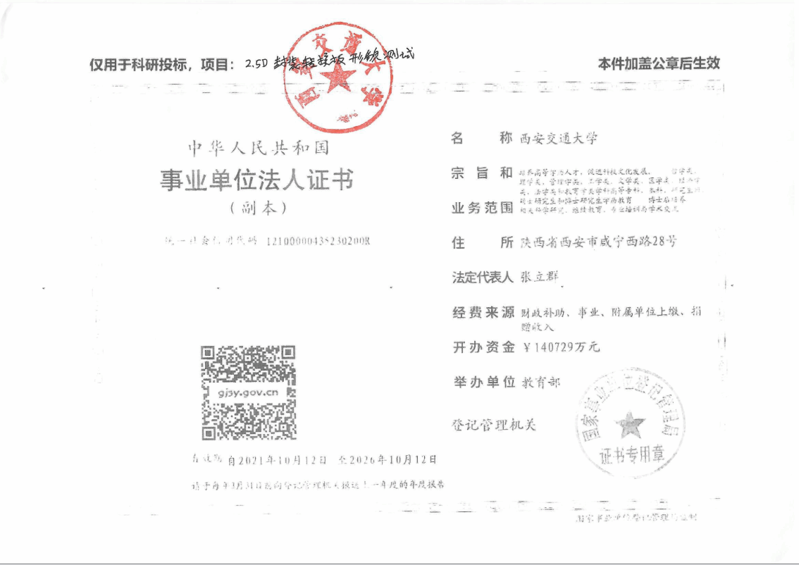 按照《开云kaiyun官方网站科研协作项目管理办法(试行)》文件规定,为加强学校科研协作项目的管理,确保面向射频器件2.5D封装转接板多场耦合可靠性研究的顺利进行。西安交通大学与项目负责人王永坤将开展科研合作,现将合作相关事项公示如下: