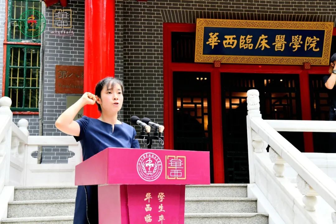 2022届本科生王傲琪同学作为本科毕业生代表发言,她向辛勤培育的老师们表示最衷心的感谢和最崇高的敬意,表示将继续带着华西人自强不息的精神,怀揣着医学梦想,实现人生理想。