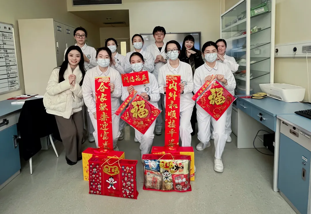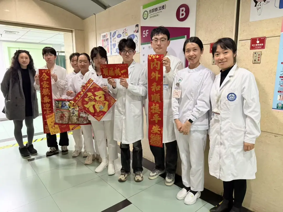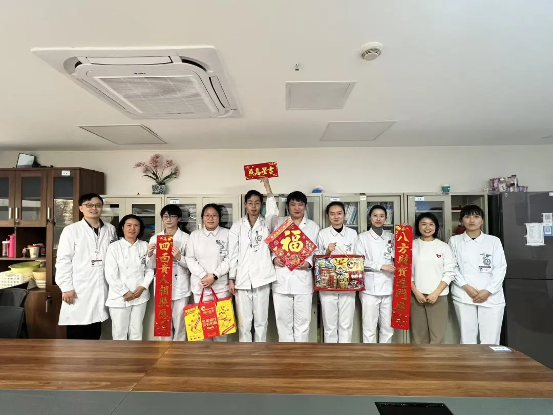 走访过程中,学院老师深入科室、病房,与实习生亲切交谈,了解实习轮转安排、工作学习及日常生活情况。老师们充分肯定了同学们在临床实践中展现出的认真态度和专业精神,赞扬了同学们在临床岗位上展现出的责任担当,并为同学们送上了承载着新春祝福的暖心礼包。