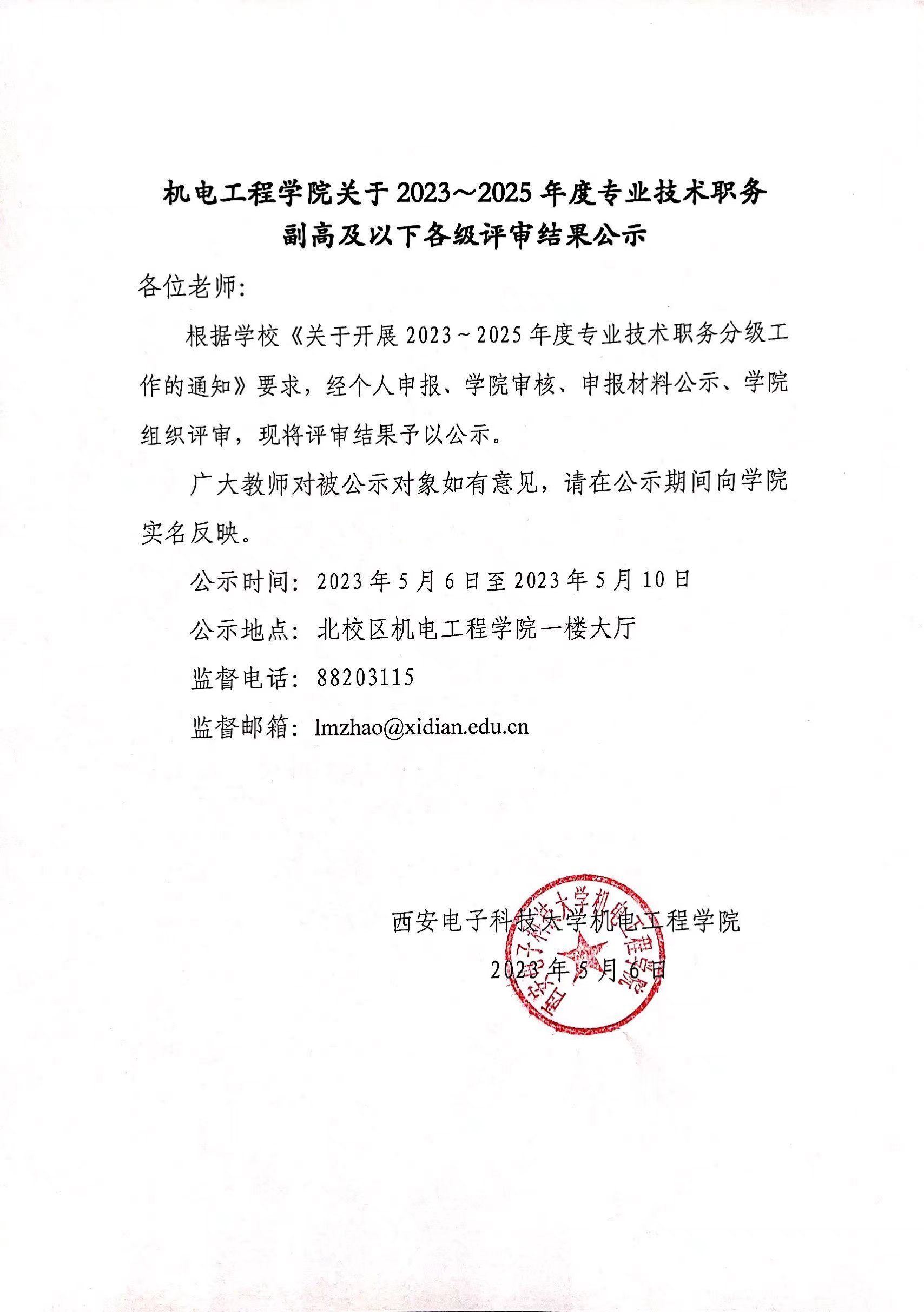 开云kaiyun官方网站关于2023~2025年度专业技术职务副高及以下各级评审结果公示(公示期已过)