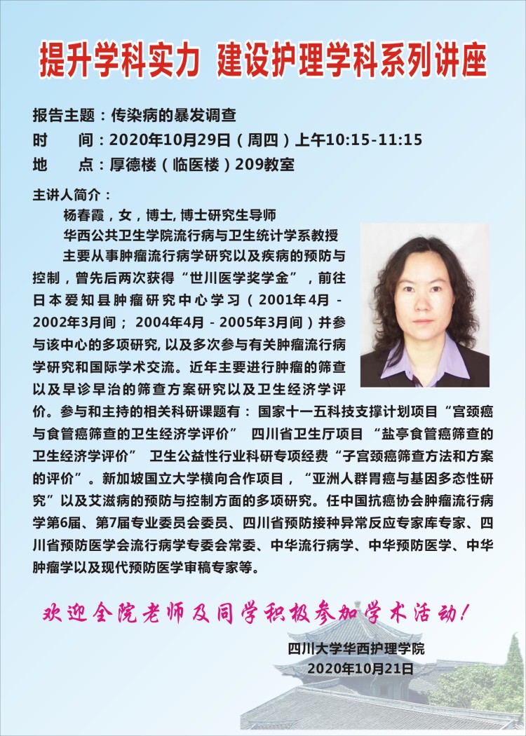 2020年10月29日讲座预告-《临床科研论文撰写与投稿技巧》、《传染病的爆发调查》