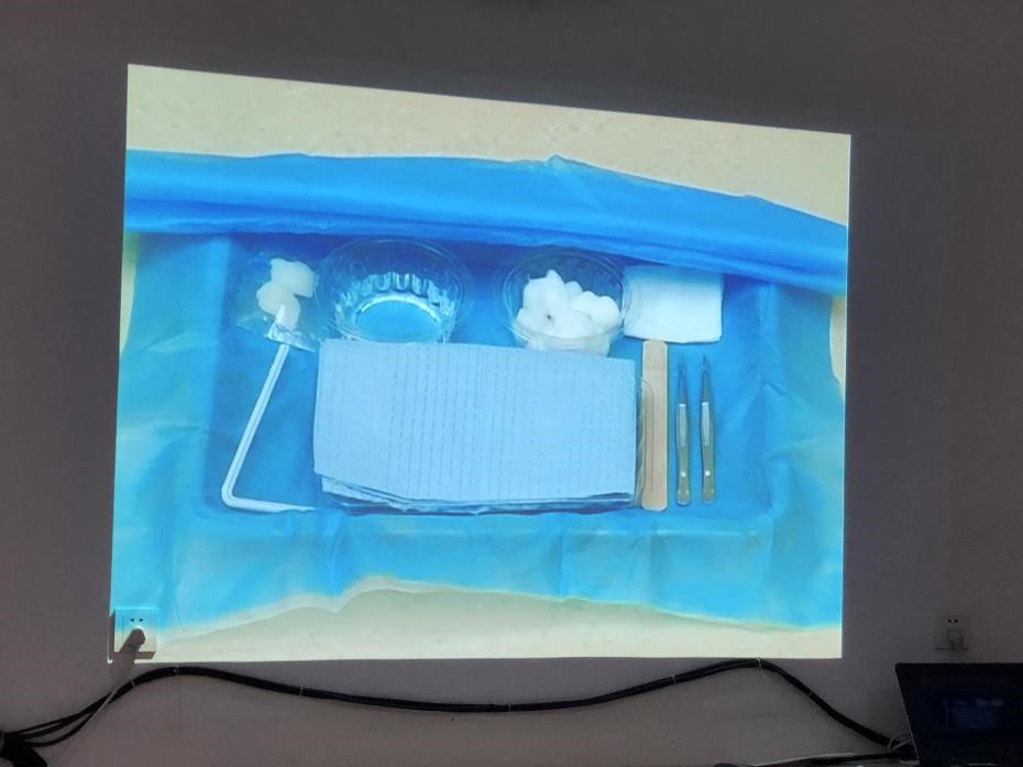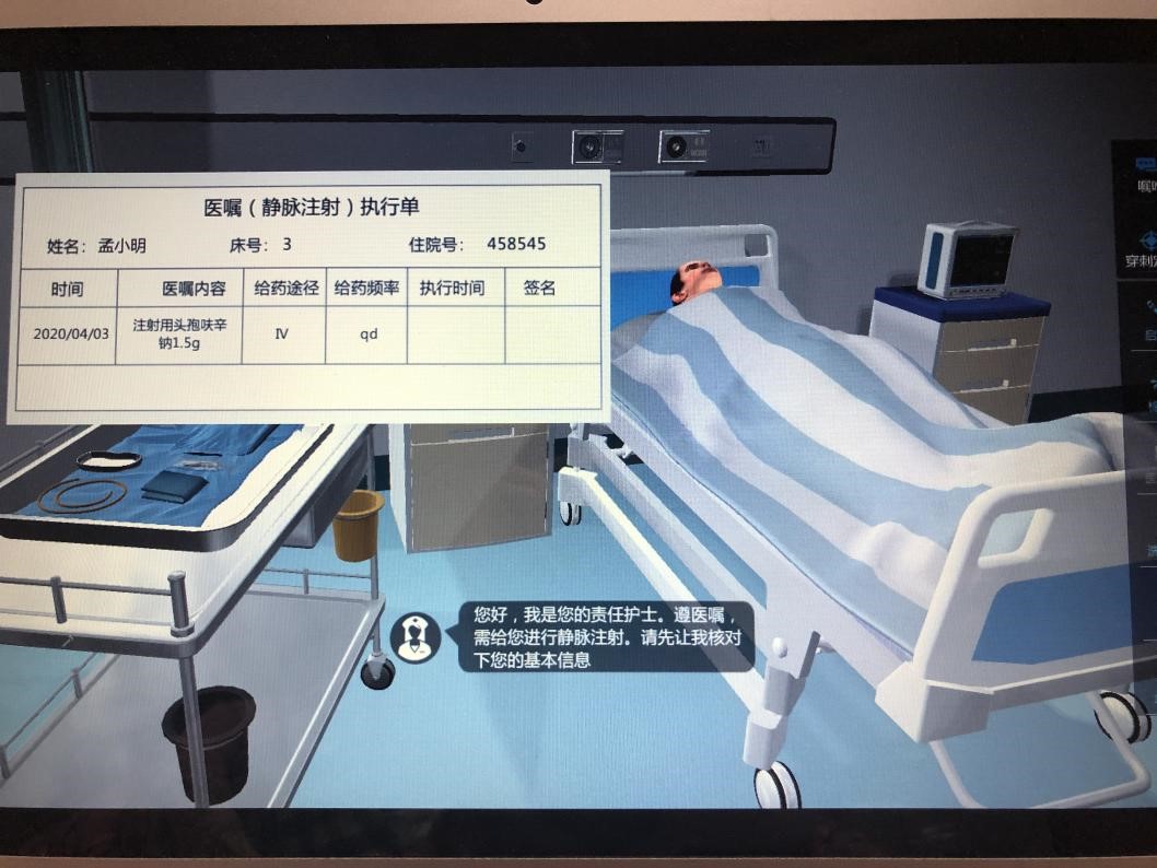 而这学期开始等待我们的是技术性要求高、难度大的注射和输液。虽然没有器械和实地操作,但为了让我们更直观地熟悉操作流程,保证在家时能够首先在脑中掌握每一个基本操作流程,这一个半月来的线上操作也给了我们全新的体验和挑战。每周上课老师们的线下示教变成了云视角面对面展示,镜头中老师们带着口罩、备好器械、不断调整视角,尽可能让我们清楚每一步、每一个手法,以及操作准备和注意事项。老师们示范完毕,我们便开始了虚拟平台上的操作。为拿满分一遍遍的重复练习过程,老师告诉我们每一步都不是看上去那么简单的,怎样在操作中做到严格执行三查七对、手法恰当、顺序正确,以及如何与患者进行有效沟通交流,每进行一步都有着不一样的技巧。