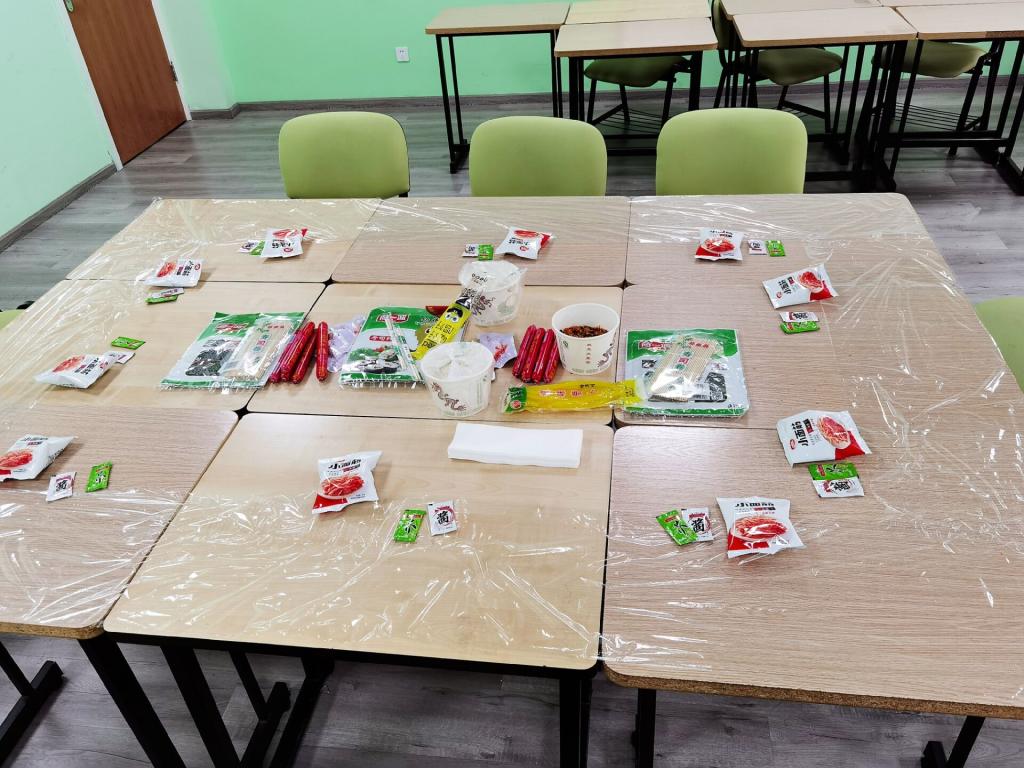 提前到场开始布置,学校食堂采购食物,干净放心。10人一桌分餐制,严格遵守疫情防控要求,努力让同学们吃得放心,玩儿得开心!