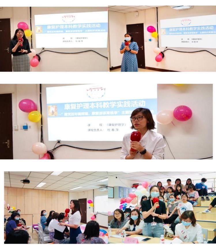 为增强康复护理和课程思政、时事融合及提高学生学习趣味性,不断提高教学质量,2021年5月18日由我院《康复护理学》课程组精心策划的“建党百年铸辉煌,康复谆谆育桃李”主题知识竞赛活动在厚德楼6024教室拉开序幕。