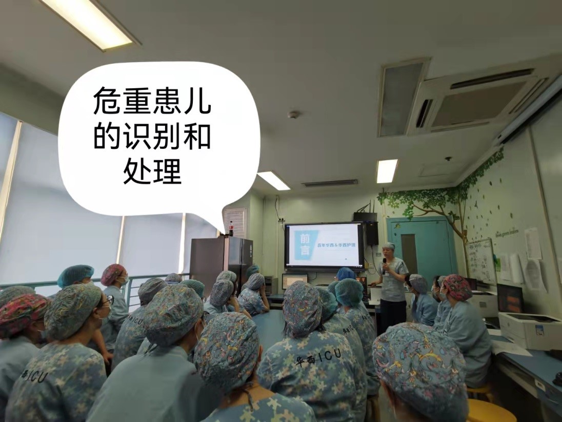 进入科室的第一天,我们的护士长唐梦琳老师及总带教杨翠老师为我们介绍了小儿ICU的发展历史:她成立于2010年5月6日,主要收治心脏外科、小儿外科、神经外科、耳鼻喉科、烧伤科、眼科等压专业的重症患者。她曾成功完成了四川首例胸腹联体女婴分离、小儿肝移植、心脏移植等疑难病例的术后监护;与加拿大多伦多Sickkids医院建立了长期的合作关系,每年派遣医生和护士前往进修和学习;开展多个持续质量改进的品管圈多次获奖;在科研方面也发表SCI和核心论文数篇,申请各级各类课题多项……十一年来,她培育了一大批优秀的护理人才。