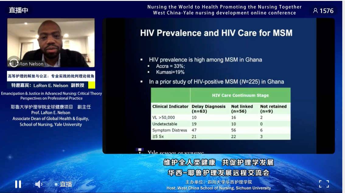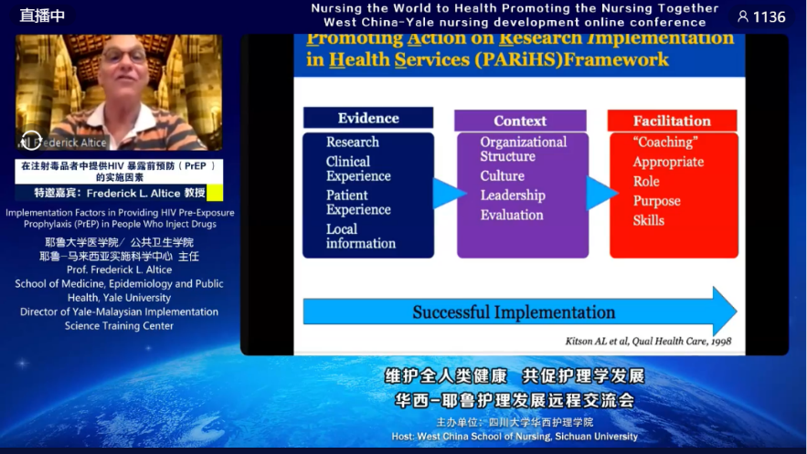 7月31日上午8:30,伟德国际英国“维护全人类健康·共促护理学发展” 系列网络论坛(第四期)—华西-耶鲁护理发展远程交流会在华西医院5G远程会议中心举行。本期论坛邀请了耶鲁大学医学院/公共卫生学院Frederick L. Altice教授、耶鲁大学伟德国际英国Canhua Xiao教授、耶鲁大学伟德国际英国LaRon E. Nelson教授、匹兹堡大学伟德国际英国Sheila A. Alexander教授、复旦大学伟德国际英国夏海鸥教授、伟德国际英国研究生院常务副院长万学红教授、伟德国际英国华西护理创新研究中心/护理学四川省重点实验室主任胡秀英教授、伟德国际英国华西医学中心医学学科建设部部长成果教授进行专题讲座。论坛由伟德国际英国张凤英副院长和李玲利副院长共同主持,伟德国际英国外国语学院胡敏霞副教授担任同声传译。