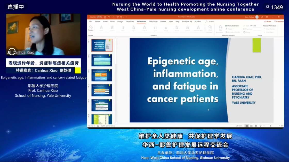 Canhua Xiao教授以“Epigenetic age, inflammation, and fatigue in cancer patients”为题,讲述了癌症患者的表观遗传年龄、炎症和疲劳之间的关系,探索癌症相关炎症信号通路,为提高癌症患者生存率和生存质量提供新思路。