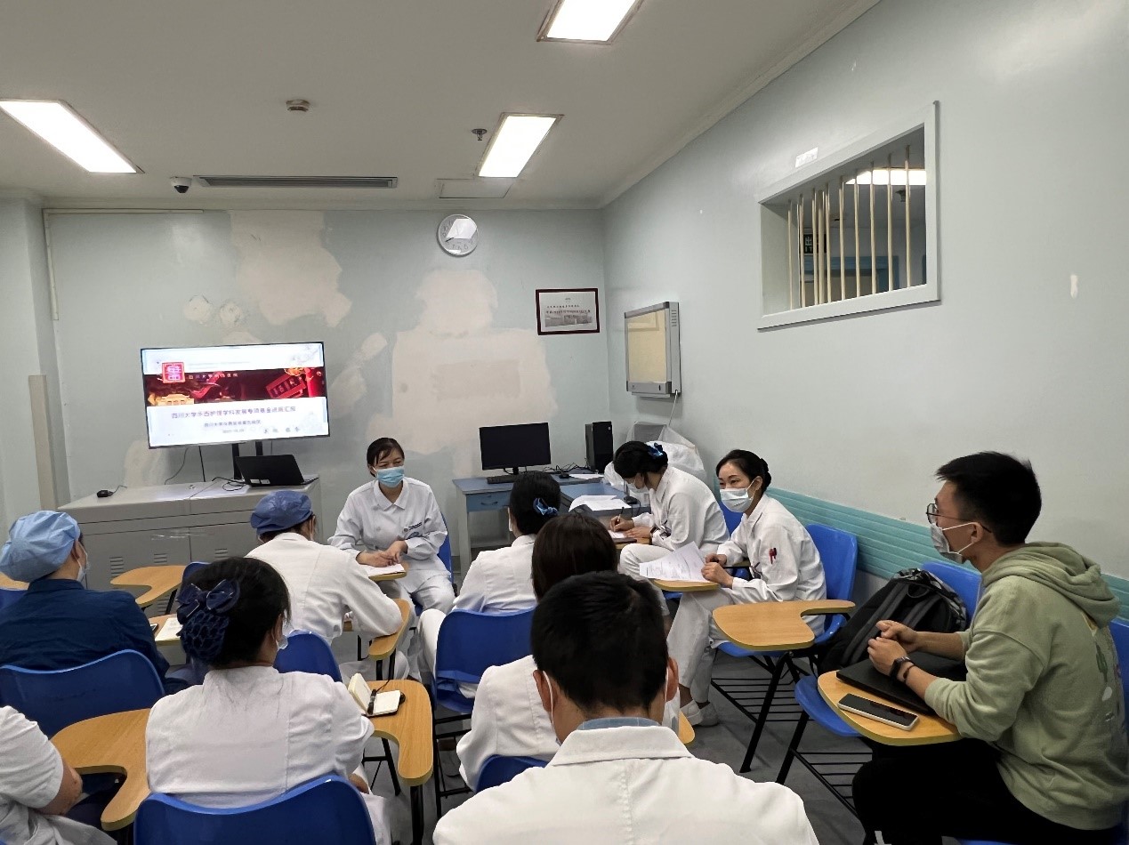为进一步加强华西护理学科发展专项基金过程管理,学科建设科10月20日走进华西医院五病区,开展临床科研零距离,学科建设进病区——护理学科发展专项基金年度进展汇报序列活动。第五病区唐梦琳病区护士长、各护理单元护士长、科研护士、护理学科发展专项基金在研项目负责人及研究团队骨干成员参与本次会议。汇报会的评审专家组由第五病区护士长唐梦琳教授、心脏内科科护士长游桂英教授及心脏大血管外科陈秒副教授组成,心脏内科副科护士长温雅担任主持。