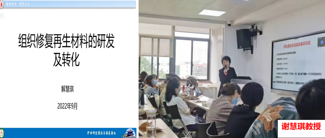 转化研究部分,邀请到了华西医院生物治疗国家重点实验室纳米生物材料研究室主任钱志勇教授、华西期刊社社长杜亮编审、四川省护理与材料医工交叉研究中心徐家壮教授、干细胞与组织工程研究室解慧琪教授分别为同学们介绍了纳米生物相关材料与纳米药物、器械临床实验研究的情况、医用高分子材料的加工与性能、组织修复再生材料的研发及转化。