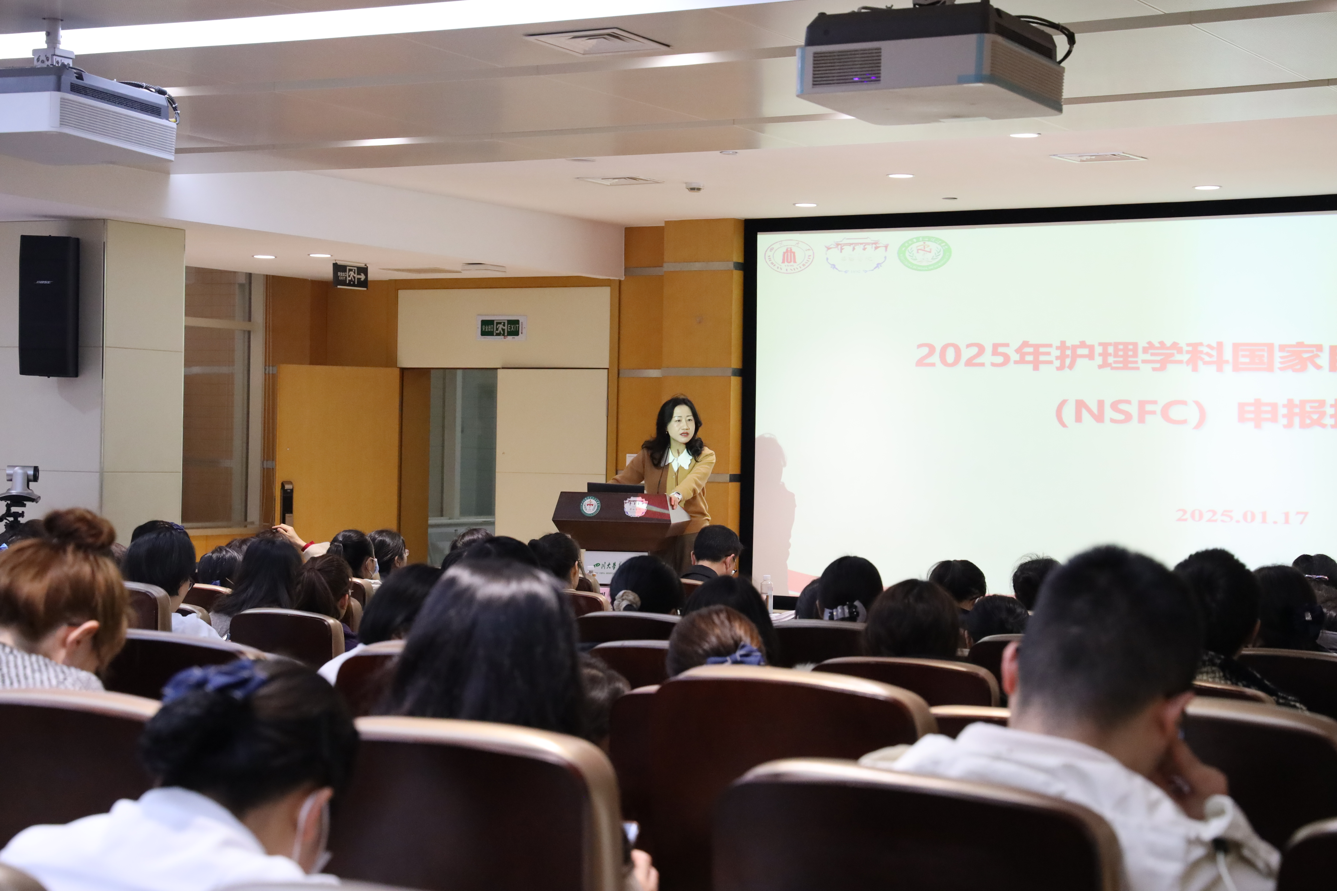 科技部薛建新副部长作动员讲话,他首先回顾了护理学科近几年国自然项目获准情况,肯定了华西护理同仁们共同努力所取得的优异成绩。同时,他从国自然基金管理框架、资助项目类型、申请与资助总体情况、2025年国自然申报优化和标书撰写建议等方面做了详细讲解,并从评审专家角度分享了心得,给广大护理同仁不断提升项目书质量提供了新思路。