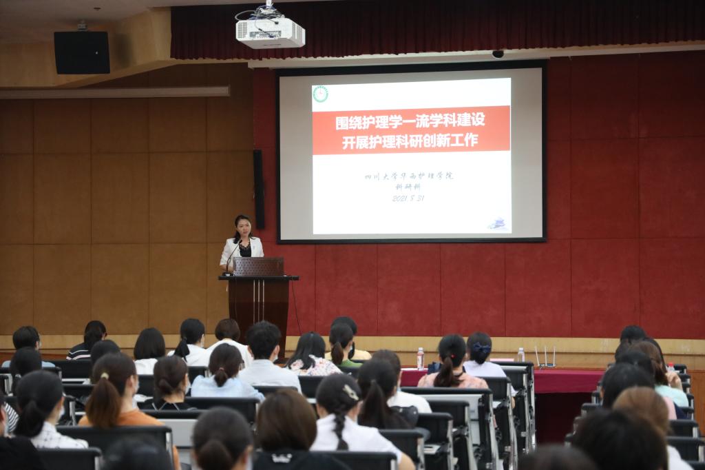 接下来,李玲利副院长做了《围绕护理学一流学科建设、开展护理科研创新工作》的讲座。对华西护理科研工作情况进行了总结,对学科建设指标、科研考核指标、兼职科研护士岗位职责、科研管理制度等进行了介绍,分析目前护理科研还存在原创性研究匮乏,基础研究不足等问题。未来5年的科研工作,要做到凝练特色研究方向,组建实力型研究团队,推进共享交叉研究平台,积极申报国家级研究项目,创新科研机制保障,孵化标志性研究成果,持续推动护理学一流学科建设。