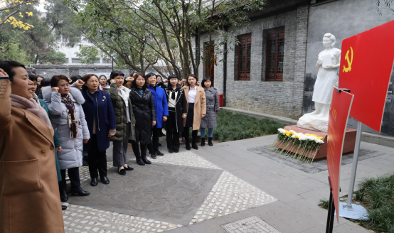 随后,全体党员及师生代表步入纪念馆内,向江姐塑像敬献鲜花、鞠躬缅怀,表达对革命先烈的崇高敬意。党支部纪检委员张凤英同志带领全体党员面对党旗,重温誓词。在讲解员的引导和讲解下,全体党员及师生有序参观了江姐纪念馆及伟德国际英国革命英烈事迹陈列馆。“锦江红梅傲雪开”主题展览是江姐纪念馆的核心部分,由“苦难的童年”“江姐在川大”“百炼成钢,英勇就义”三部分组成,通过展现江姐在川大的学习生活及珍贵档案,介绍了江姐短暂而伟大的一生,还原了一个思想进步、鲜活的革命烈士形象。英烈馆则重点展示了民主革命时期为新中国献出宝贵生命的67名川大师生校友的革命事迹。通过参观,大家回顾了救亡图存的峥嵘岁月,感悟革命先烈、英模人物的榜样力量,深刻领悟了川大英烈和前辈们将治学与救国紧密结合的昂扬民族斗志和精神风范。