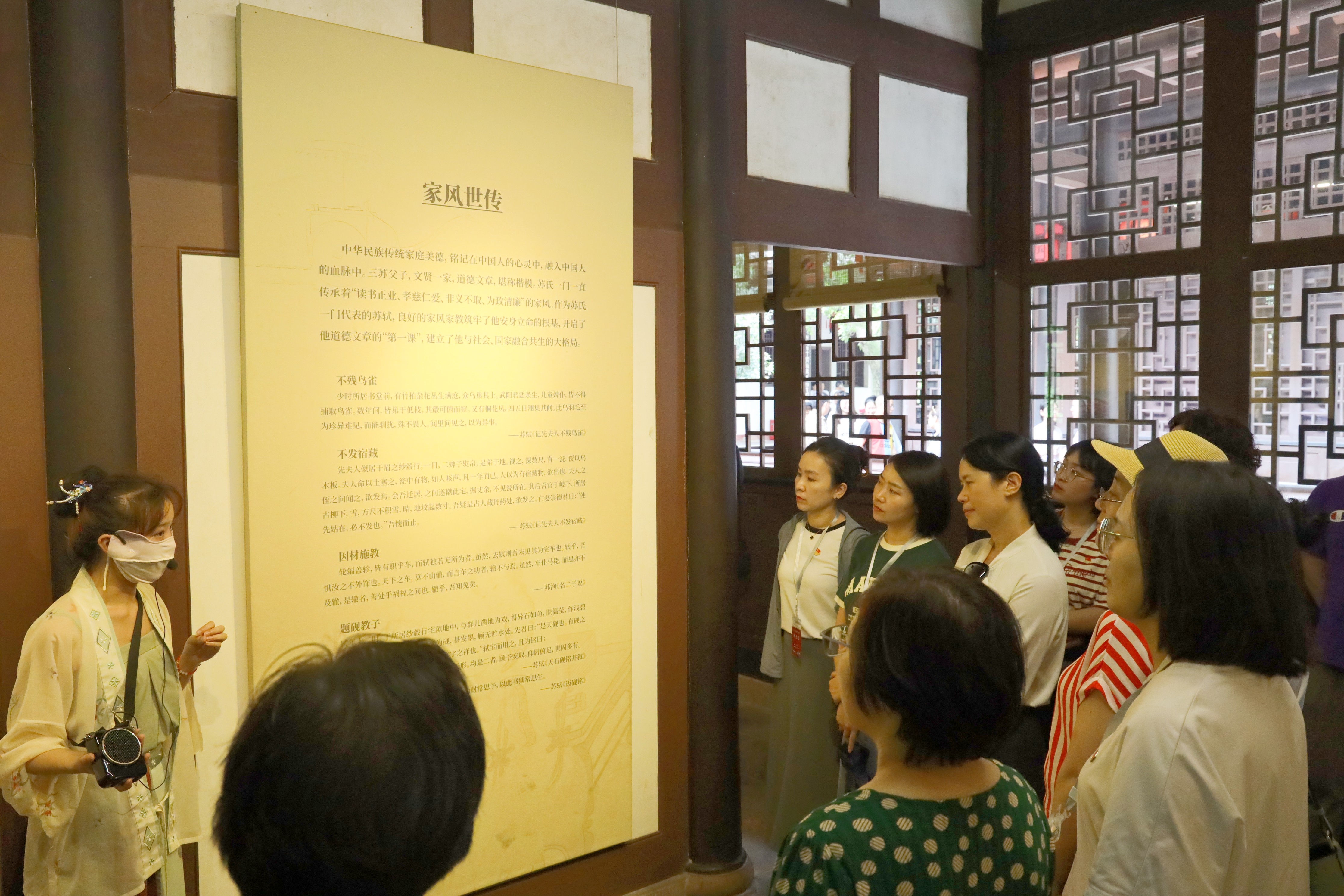 在眉山市三苏祠廉政教育基地,大家参观了北宋著名文学家苏洵、苏轼、苏辙三父子的故居和三苏祠博物馆,现场学习了三苏生平、主要文学成就、家风家训以及三苏祠历史沿革、东坡文化传承等,重温了习近平总书记关于坚持文化自信和加强家风家教等系列重要指示精神。