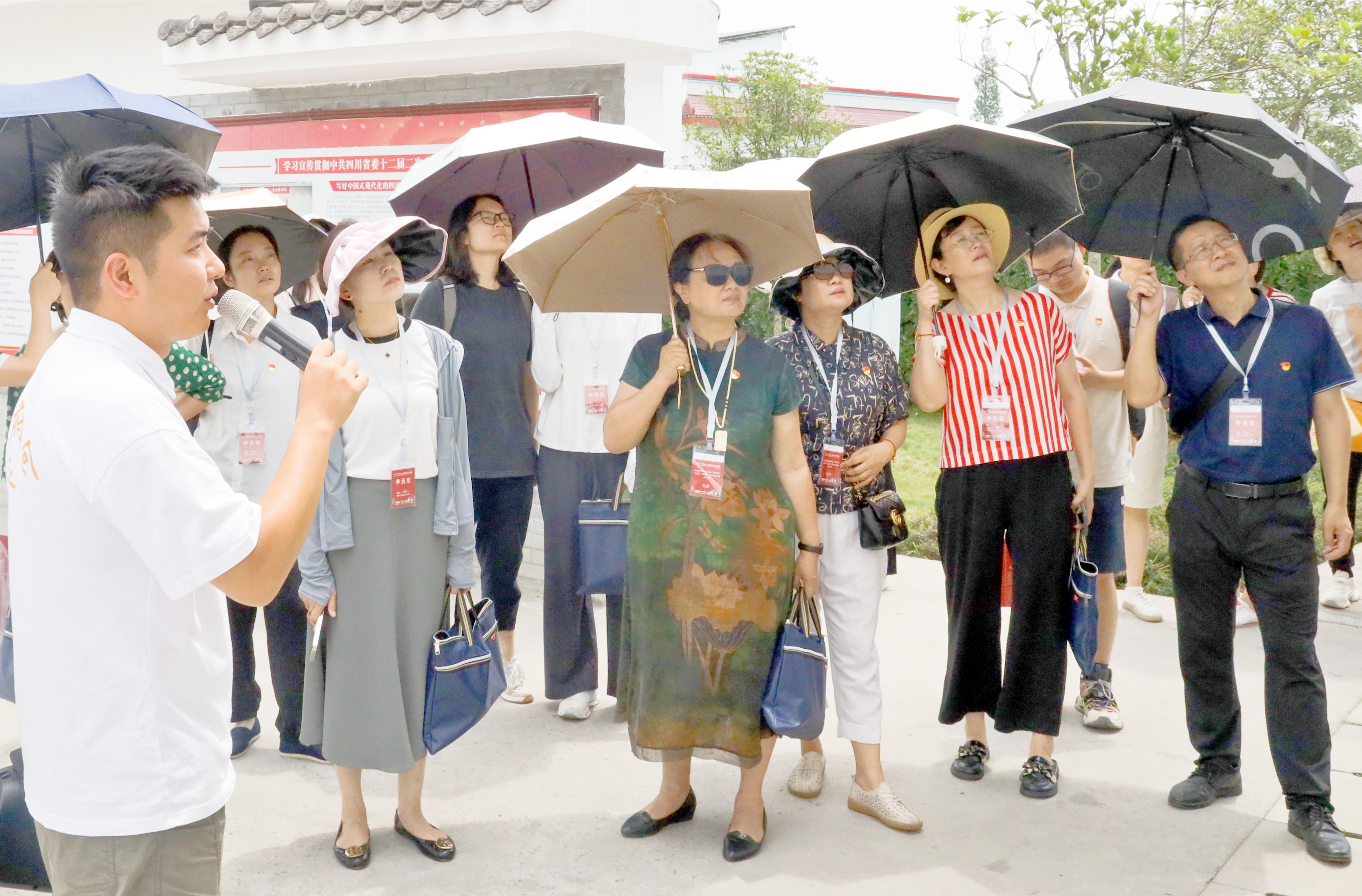 沿着总书记的足迹,大家来到眉山市东坡区太和镇永丰村,了解了永丰村的建设历史,听取了当地加强粮食生产、推进乡村振兴、基本医疗等方面的经验介绍,重温了习近平总书记关于守住耕地红线、确保粮食安全、推进农业现代化等系列重要指示精神。